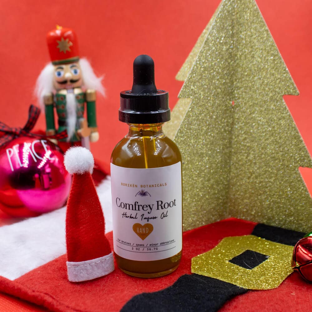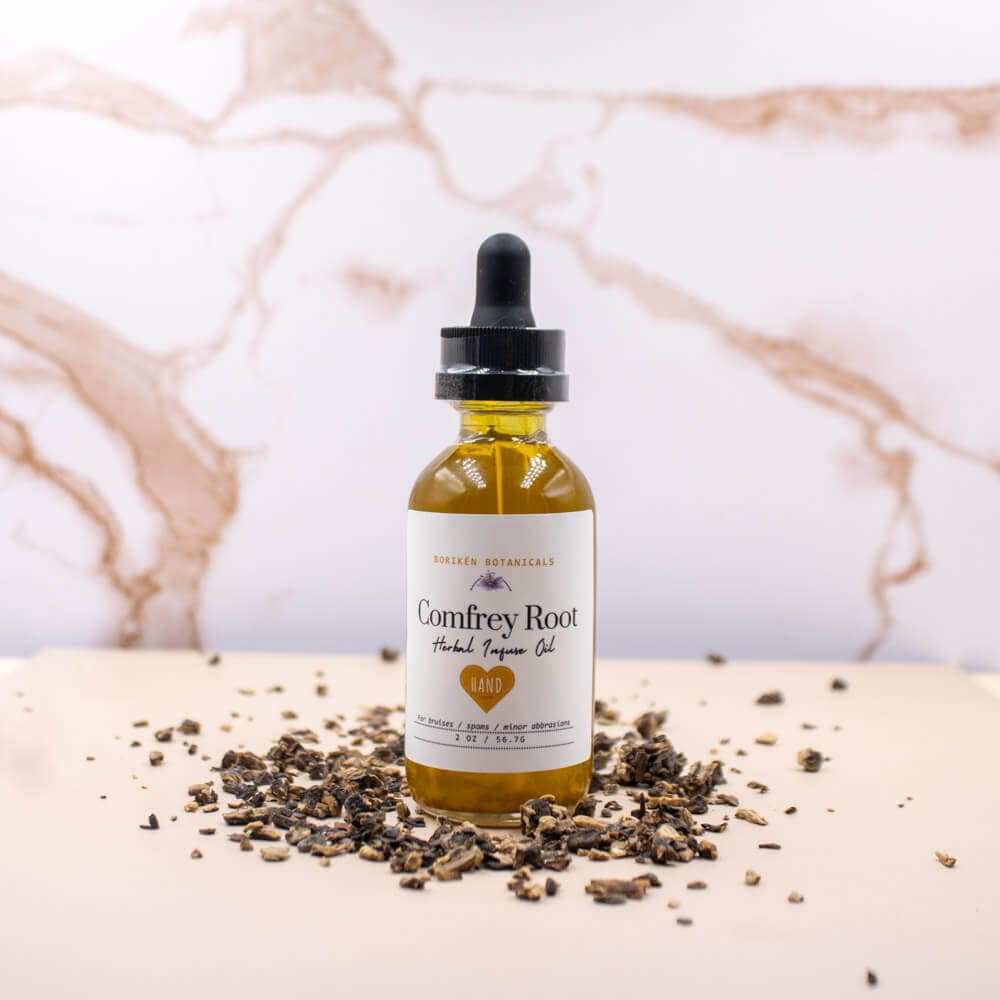 El aceite infusionado de la raiz de comfrey es de uso externo y se destaca por sus propiedades: