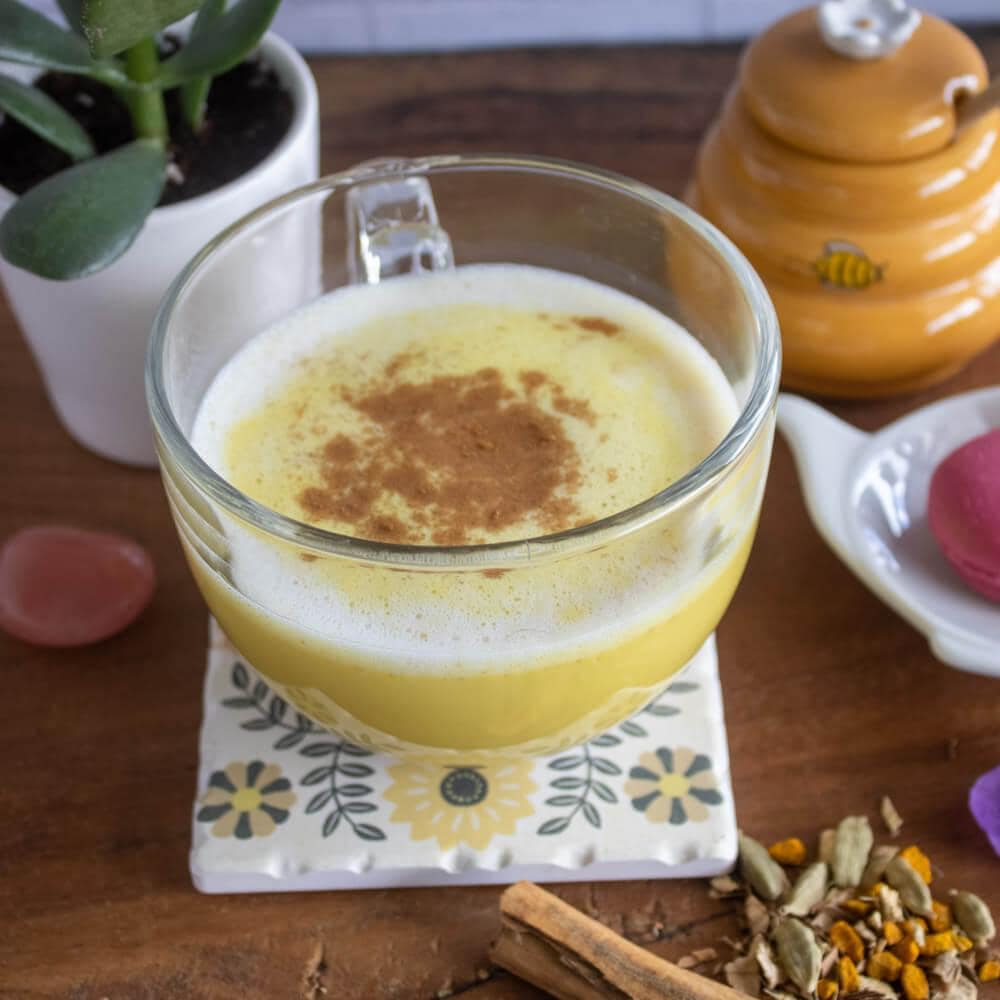 El Golden Milk o «Leche Dorada» es una bebida que se toma de manera tradicional en la India. Muy utilizada en la medicina ayurvédica. Muy conocida por sus propiedades antiinflamatorias y antioxidantes. La bebida se pepara con una mezcla de leche( de vaca, almendra, coco, etc) y especias, siendo la cúrcuma el ingrediente principal y que le dá su carasterístico color dorado.